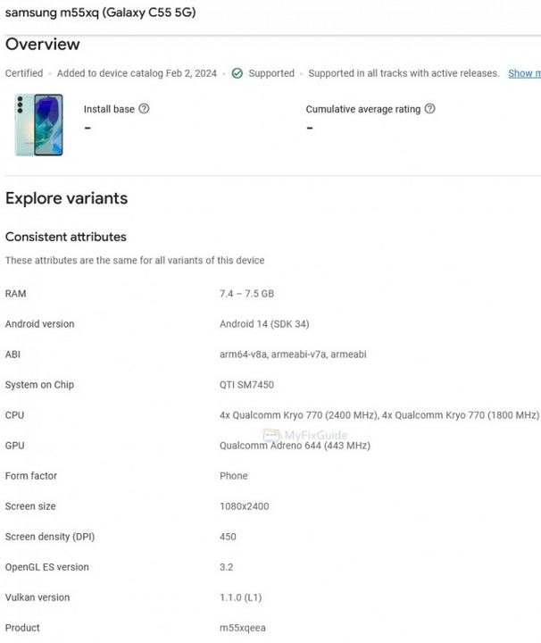 Σύμφωνα με μία εισαγωγή στο Google Play Console, εμφανίστηκε ένα Galaxy C55 όπως φαίνεται με όνομα μοντέλου m55xqeea.